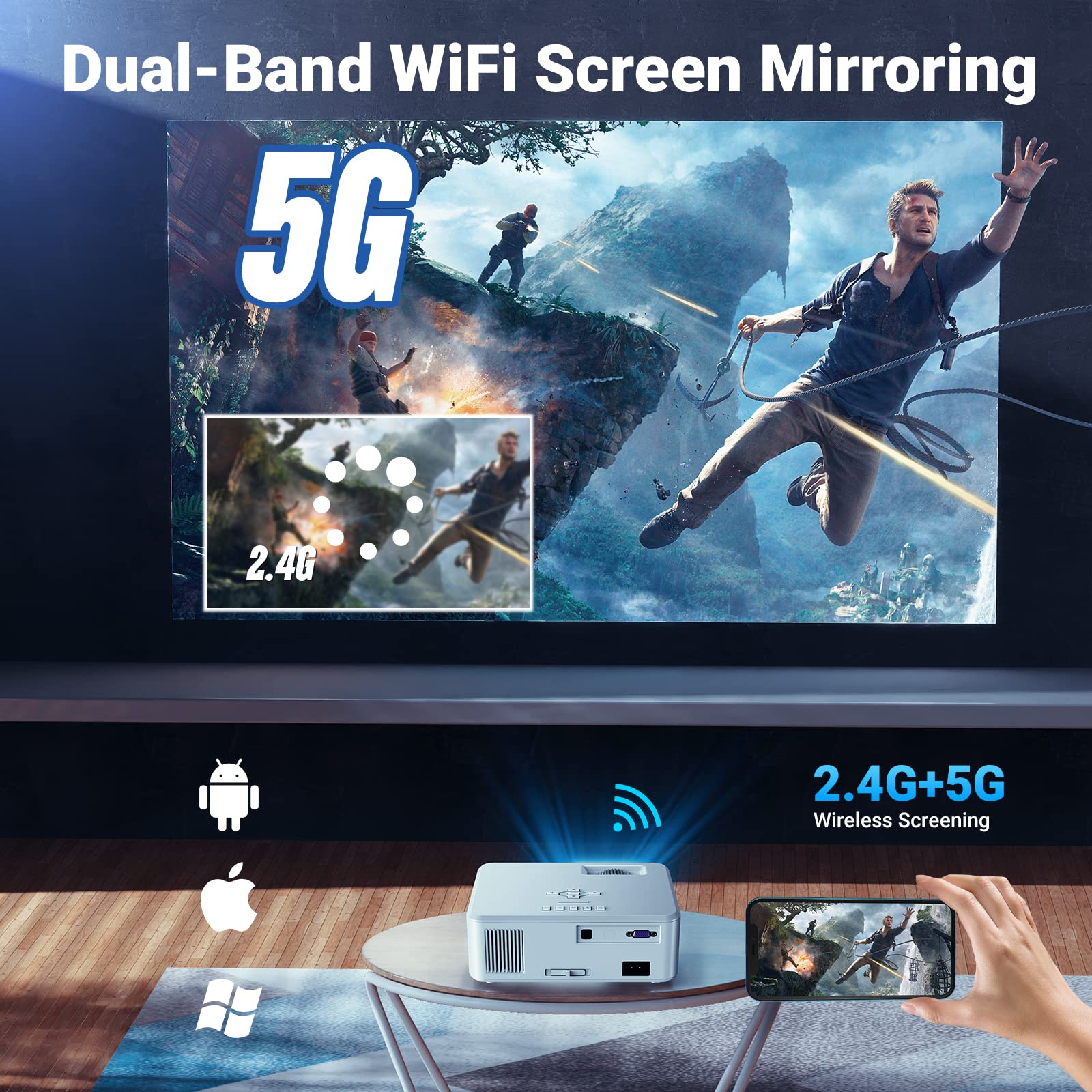 Pericat Projector with WiFi and Bluetooth, 5G WiFi Native 1080P Movie Projector, 9800L 4K Supported Portable Outdoor Projector